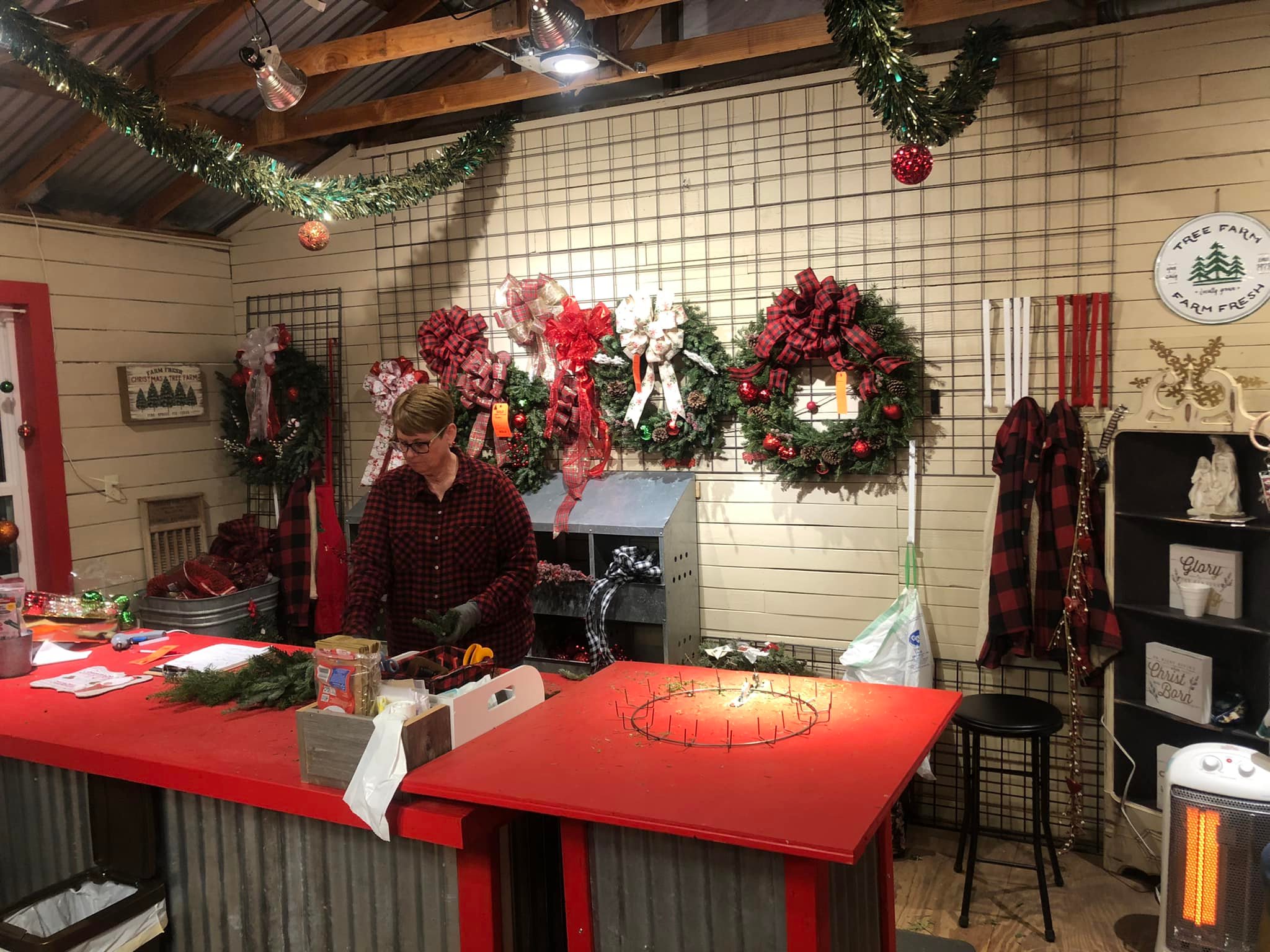 Choose a pre-cut tree from our old fashioned lighted tree lot under the shelter –