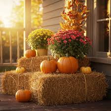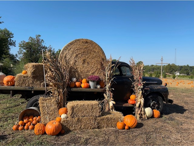 pumpkins, corn stalks, broom corn, wheat sheaves, cotton stalks, straw bales and scarecrows!